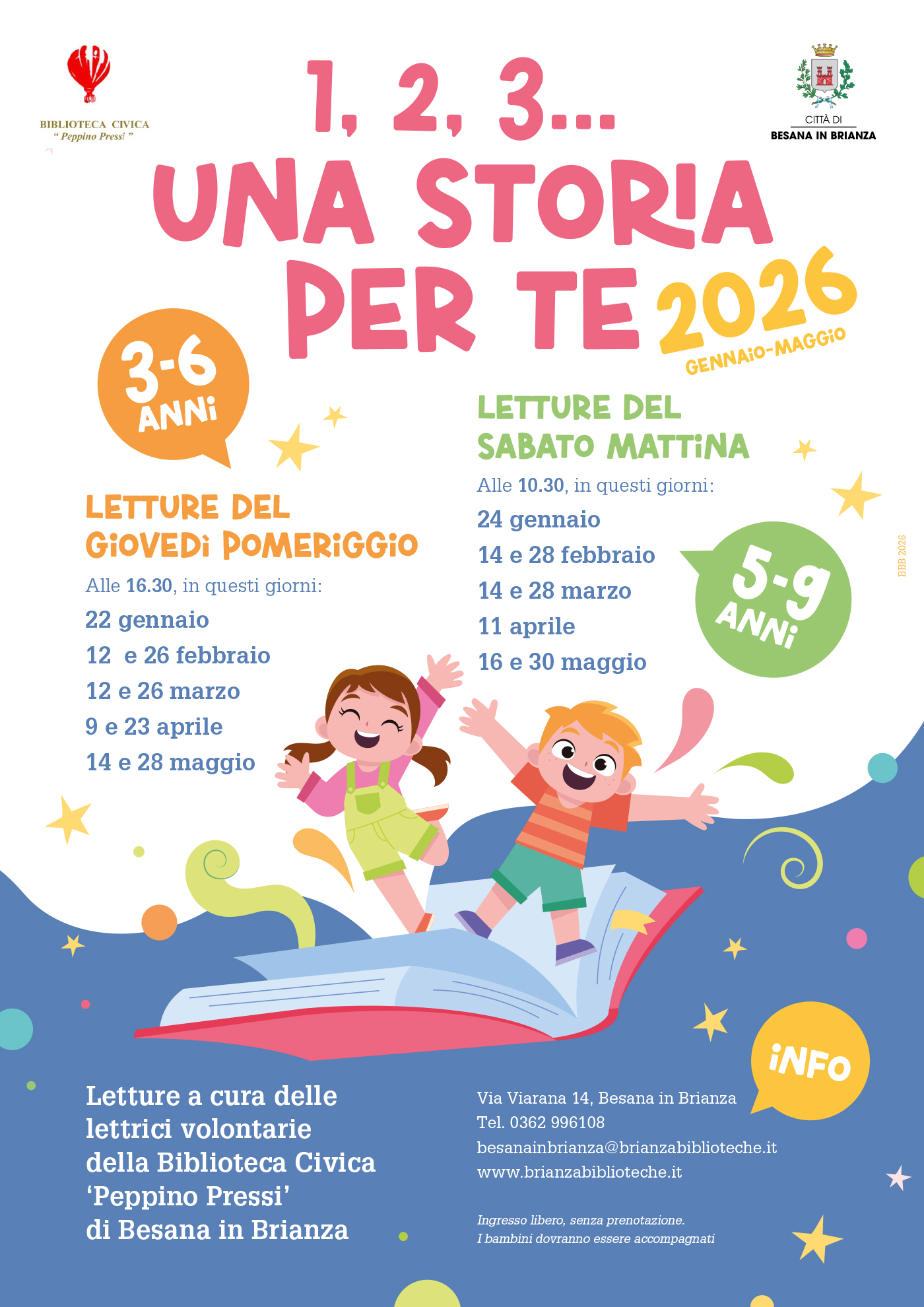 Il giovedì pomeriggio alle 16:30 nuovi appuntamenti con le letture per i bambini (3-6 anni), a cura delle lettrici volontarie. Nella locandina allegata tutte le informazioni e il calendario fino a maggio.