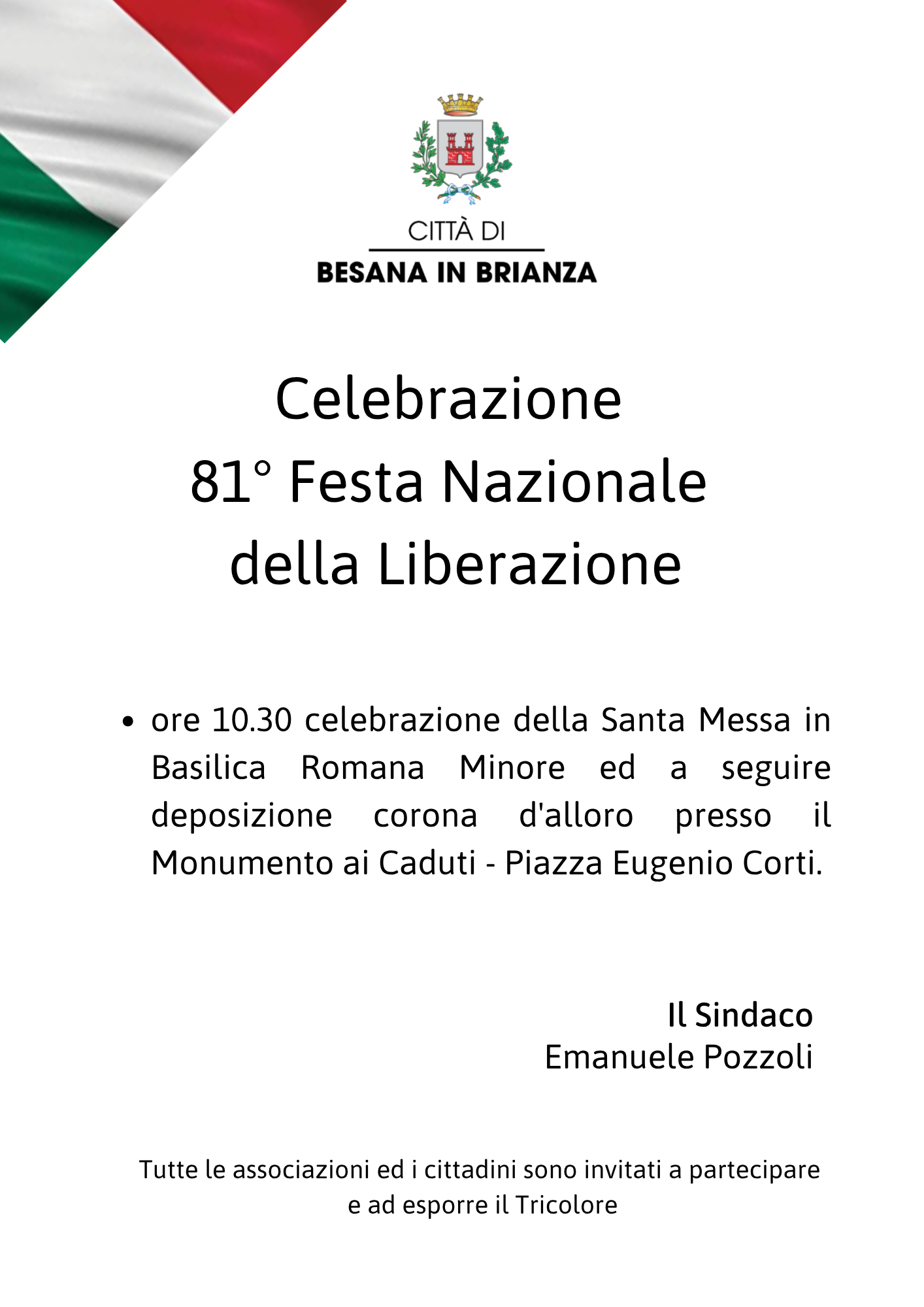 L'Amministrazione comunale invita tutte le associazioni e la cittadinanza a partecipare alla celebrazione del 25 aprile.